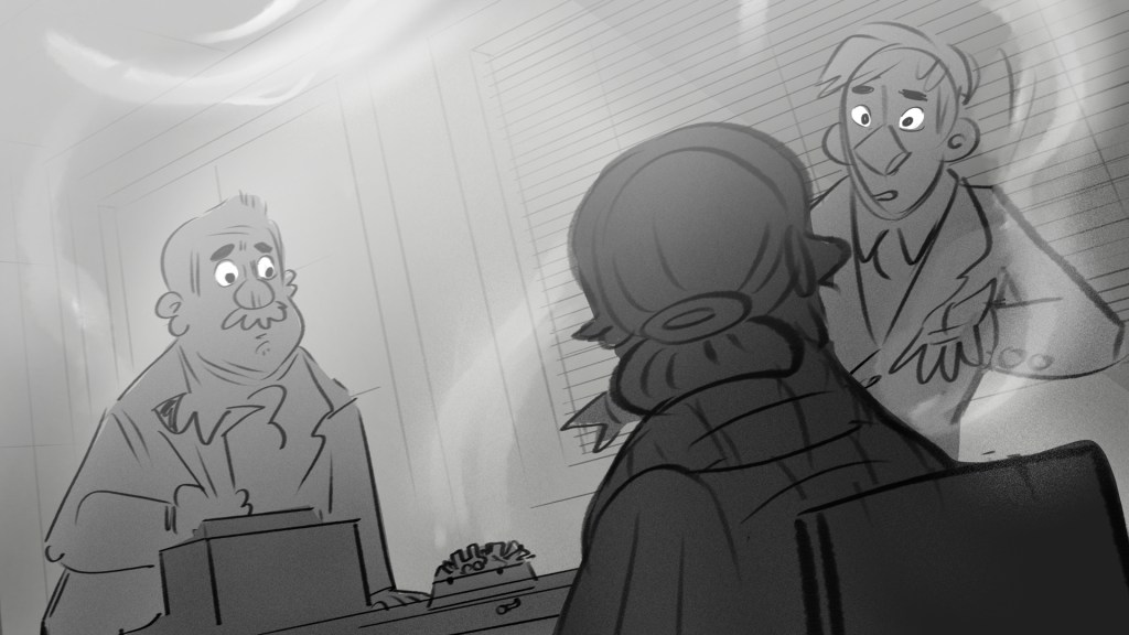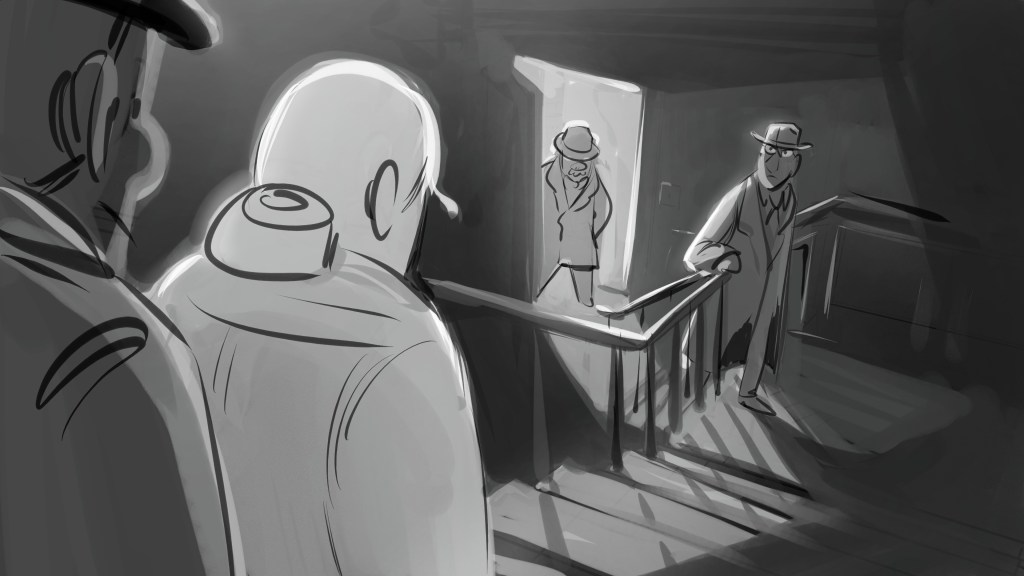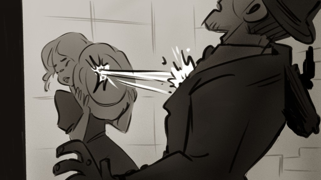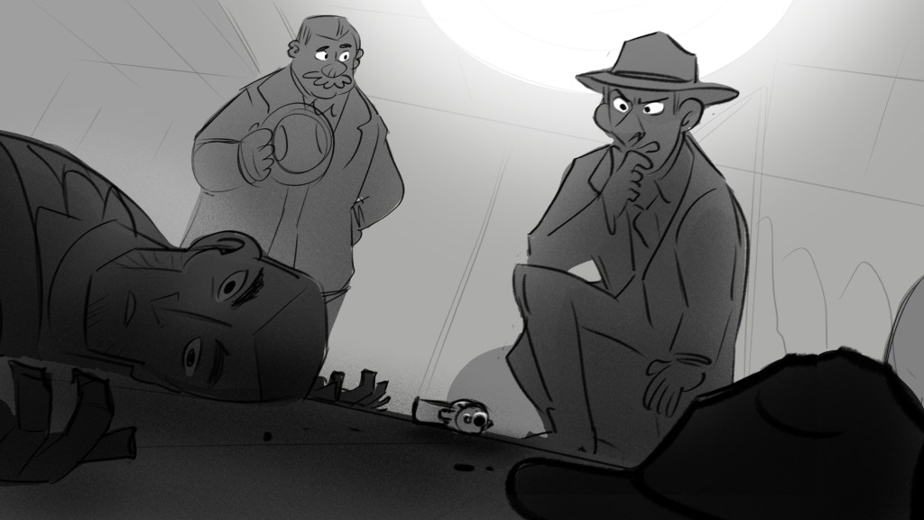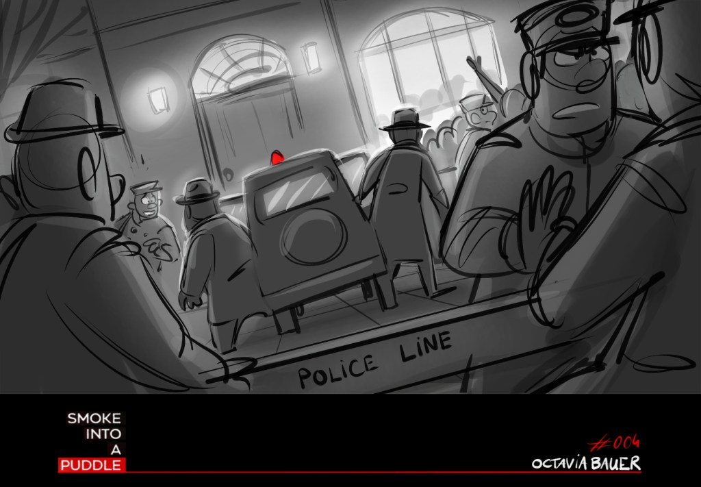 A beatboard from a story I wrote about guns, a girl, and inspectors.